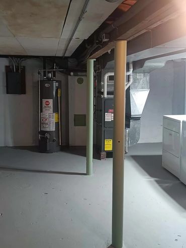 Support posts and pipes sticking out of floor painted accent color.